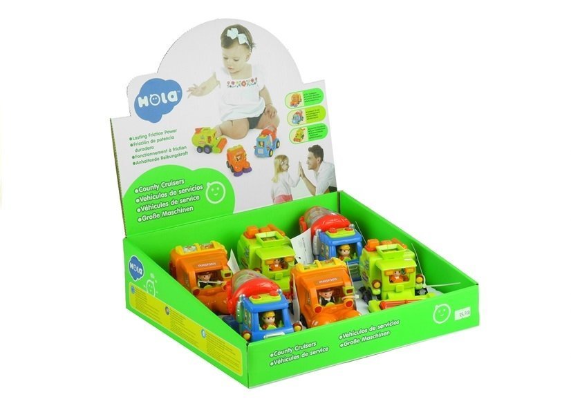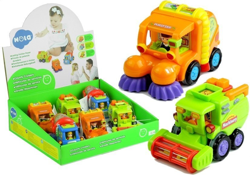 Pojazdy to zabawki, które niemal zawsze wpasują się w gust małych chłopców. Umożliwiają one aranżację wielu ciekawych, a przede wszystkim rozwijających zabaw, które pozytywnie wpływają na wyobraźnię, kreatywność i zdolności manualne małych chłopców. Prezentowane autka posiadają napęd, dzięki któremu mogą swobodnie sunąć przed siebie. Autka występują w kilku wariantach, w serii znajduje się kombajn, śmierciarka i betoniarka.