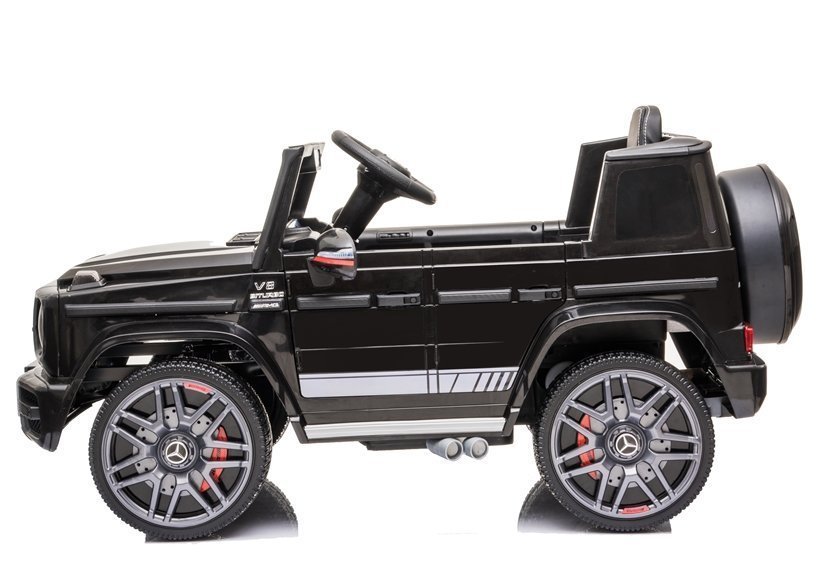 Czarny, lakierowany Mercedes G63 AMG jest istnym połączeniem solidności, najwyższej jakości i militarnego wzornictwa. Pojazd ten sprawdzi się zarówno podczas codziennych jazd po osiedlu, jak i w czasie weekendowych wycieczek poza miasto. Znajdujące się „pod maską” dwa silniki o mocy 45W każdy w połączeniu z akumulatorem 12V4,5Ah umożliwiają jazdę w prędkości od 3 do 5 km/h, co z pewnością zrobi wrażenie nie tylko na małym kierowcy, ale i przechodniach.