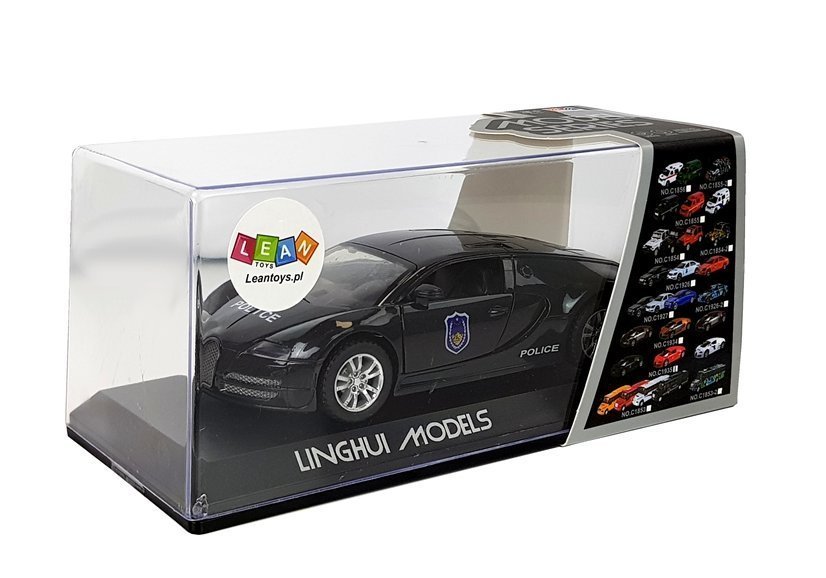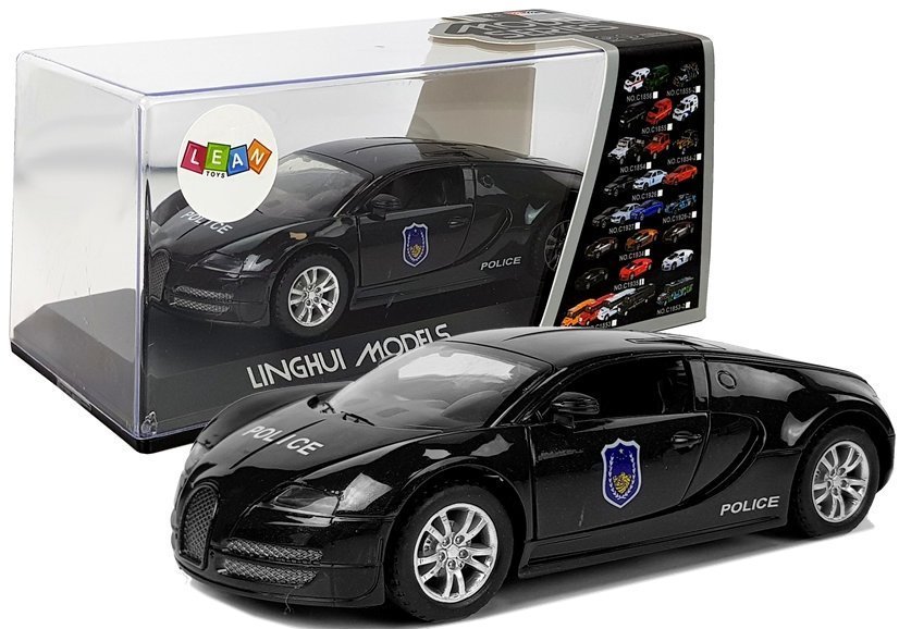Ten model jest połączeniem sportowego auta z zawodem policji. Napisy i naklejki po boku i przodzie autka są cechy charakterystyczne policji, a kolor czarny dodaje sportowego wyrazu. Jest to inna odsłona standardowych wozów policyjnych. Zabawka rozbudzi w Twoim dziecku ciekawość, wymiary autka dopasowane są do małych rączek. Będzie to też gratka dla kolekcjonerów, taki wóz może być uzupełnieniem kolekcji. Plusem jest naciąg, dzięki któremu wystarczy nacisnąć auto z tyłu, puścić i obserwować rozwijającą się prędkość. Efekty świetlne i dźwiękowe uruchamiają się po naciśnięciu przycisku na spodzie autka. Aktywują się dźwięki przypominające jazdę policji na sygnale oraz załączają się przednie światła, migające na biało.
