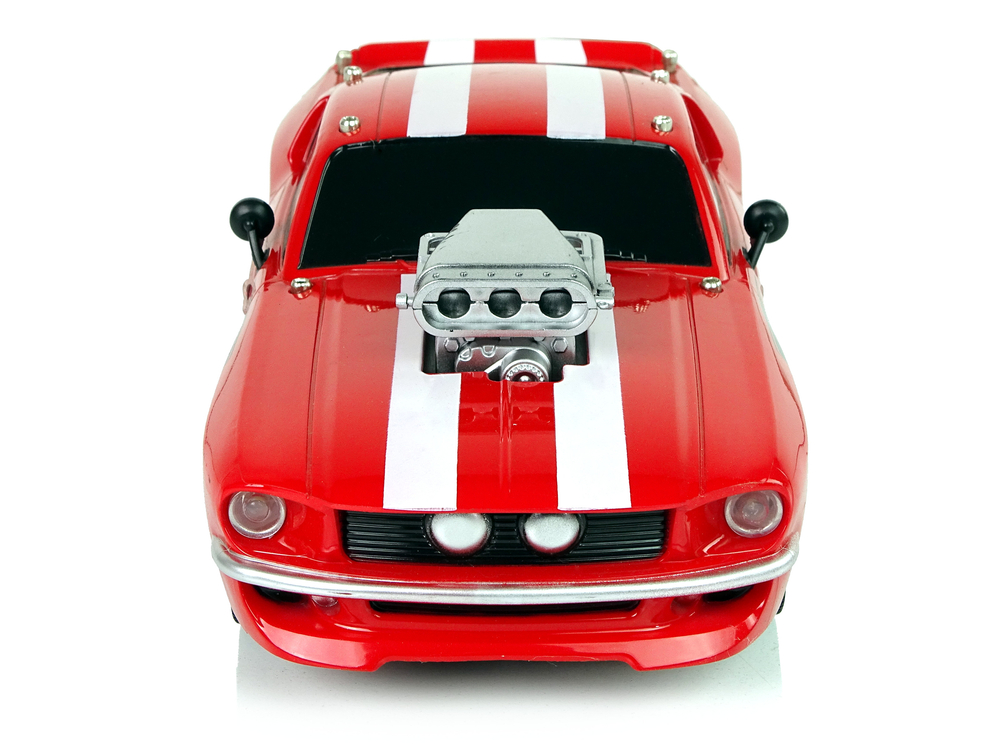Samochód posiada lekką i wytrzymałą konstrukcję, sportowy design z dwoma białymi pasami na dachu, srebrną sprężarką na masce auta, dodają efektu. Gumowe opony gwarantują przyczepność do podłoża podczas sterowania autem.