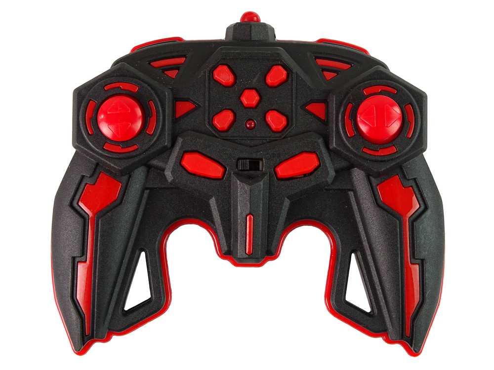 Czarny pilot z czerwonymi przyciskami jest lekki, poręczny i idealny dla małych rączek. Jego wymiary to: 13 cm x 10 cm x 4 cm. Wymiary auta to 29 cm x 18 cm x 16 cm. Zestaw zawiera autko, pilot, akumulator 3.7V 1200mAh oraz ładowarkę z wejściem USB do ładowania akumulatora.