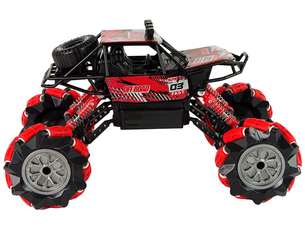 Czerwone, zdalnie sterowane autko na pilota to doskonały wybór dla miłośników motoryzacji. To auto bez problemu pokonuje przeszkody dzięki zastosowanym amortyzatorom i dużym kołom o średnicy 8 cm. Realistyczny wygląd auta zachwyci każde dziecko. Sterowanie zdalnie sterowanego auta rozwija koncentrację, trenuje palce i wzmacnia skupienie.