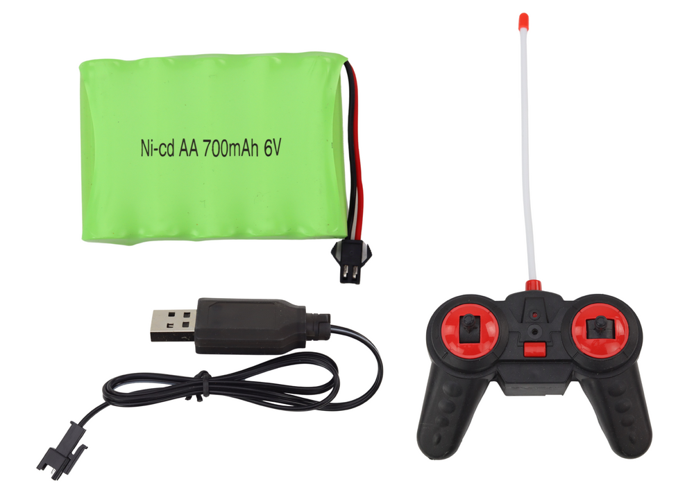 Auto zasilane jest na akumulator 6V 500mAh, który jest elementem zestawu. Do akumulatora dołączona jest ładowarka.