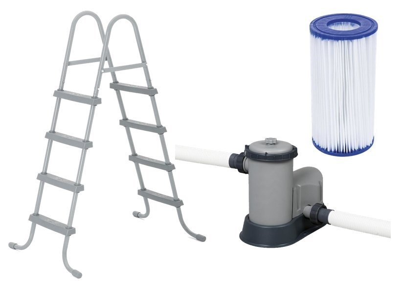 Materiał z którego wykonany jest basen jest wzmocniony w celu zwiększenia wytrzymałości i odporności na przebicia. Basen jest również wyposażony we wszystkie niezbędne elementy do montażu oraz akcesoria dzięki czemu nie musisz szukać żadnych dodatkowych elementów do kupna. Nie są wymagane żadne narzędzia, a wąż podłączany jest do wbudowanego zaworu regulacji przepływu, aby szybko i łatwo spuścić wodę z basenu. Pokrywa dołączona do basenu zasłoni wodę podczas przerwy w użytkowaniu basenu, chroniąc przed zanieczyszczeniami oraz spowolni utratę ciepła wody. Basen wyposażony jest również w wygodną i bezpieczną drabinkę umożliwiającą łatwe i szybkie wymontowanie stopni podczas gdy basen nie jest używany. Dzięki temu dzieci nie będą miały możliwości wejścia do basenu bez nadzoru osoby dorosłej.