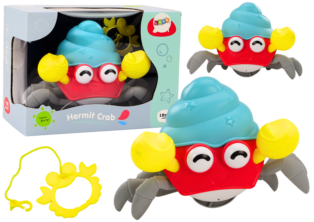 Zabawka jest nakręcana, a z tyłu kraba znajduje się pokrętło, które można obracać w prawo i lewo. Po nakręceniu krabik samoczynnie się porusza, co sprawia, że zabawa jest dynamiczna i wciągająca.