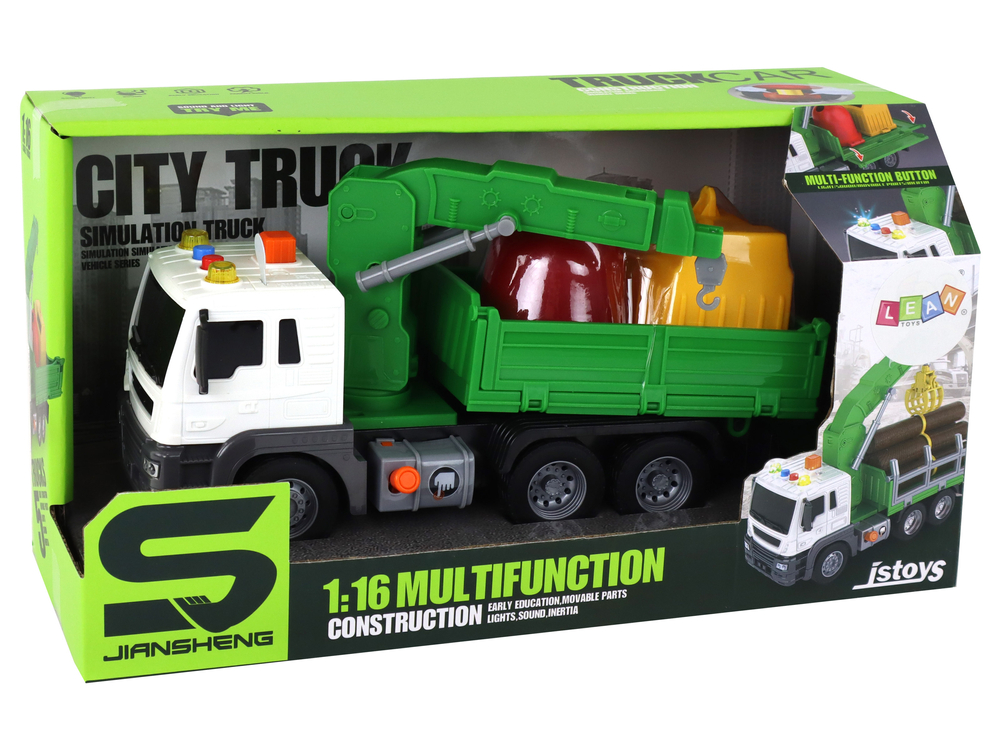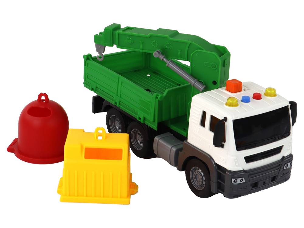 Ciężarówka Śmieciarka Z Dźwigiem Napęd Frykcyjny Zielona 1:16