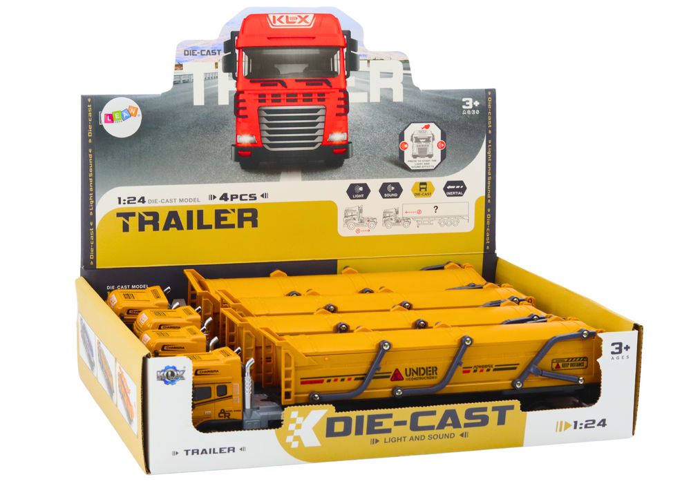Ciężarówka Z Przyczepą TIR Pojazd Transportowy 1:24 Dźwięki Światła Żółta
