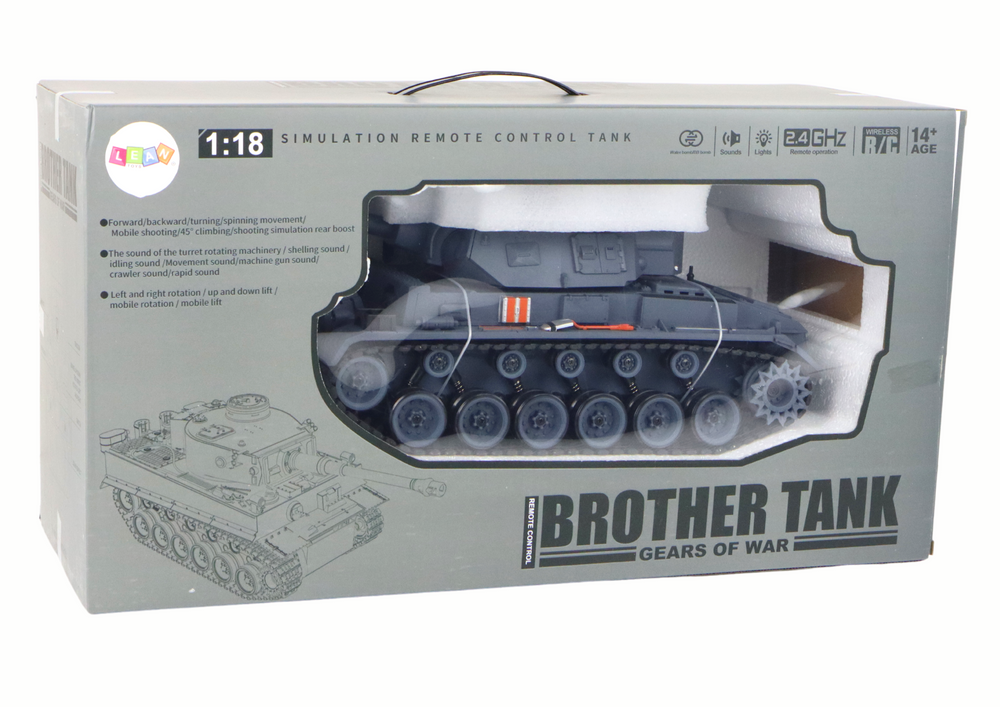 Czołg Zdalnie Sterowny RC 1:18 Armata Dym Tarcza Dźwięki Szary