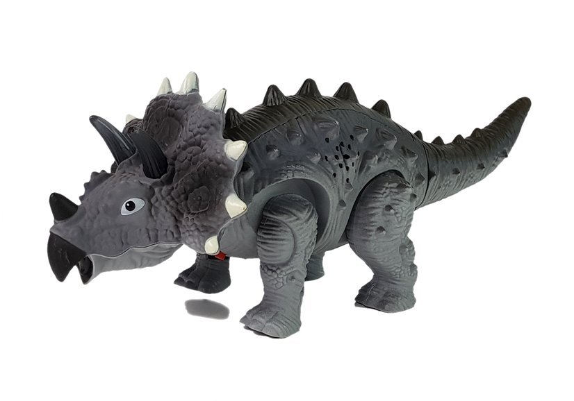 Zabawka jest doskonałym odwzorowaniem ogromnego Triceratopsa, żyjącego około 125 – 100 milionów lat temu. Dinozaur posiada świecące elementy, które świecą podczas chodzenia. Wykonany jest w kolorze naturalnym zbliżonym do autentycznego umaszczenia wielkich gadów. Dodatkową zaletą są odgłosy zwierzęcia.