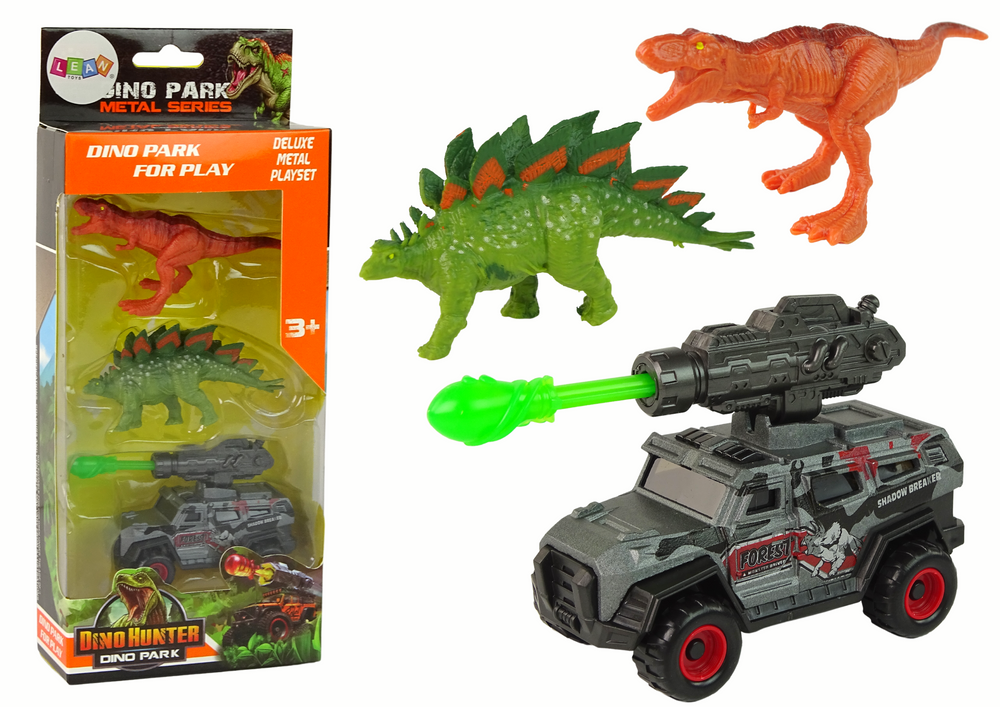 Pojazd terenowy jest nowoczesny i gotowy do przygód w poszukiwaniu dinozaurów. Na dachu pojazdu znajduje się rakietnica z ruchomą rakietą. Dinozaury mogą być śledzone i badane z wnętrza pojazdu, co czyni go idealnym narzędziem do ekspedycji w prehistorycznym świecie. Rakietnica na dachu pojazdu jest wyposażona w strzałę, która służy do polowań na dinozaury. Ta innowacyjna funkcja dodaje element akcji i przygody do zabawy, pozwalając na udawanie polowań na dinozaury.