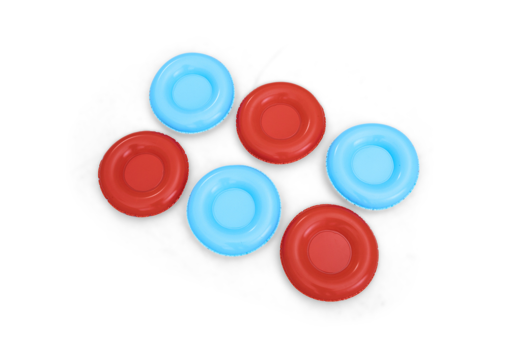 Dmuchana tarcza to idealna zabawa na świeżym powietrzu dla całej rodziny. Dołączone do zestawu frisbee w różnych kolorach posłużą do rywalizacji w drużynach. Gra ćwiczy celność oraz koordynację ręka- oko. Gra zapewni dużo radości nie tylko dzieciom, ale również dorosłym. Wytworzona z wytrzymałego materiału tarcza jest odporna na uszkodzenia.