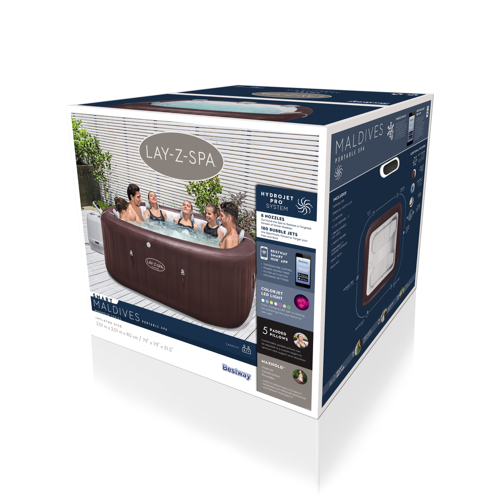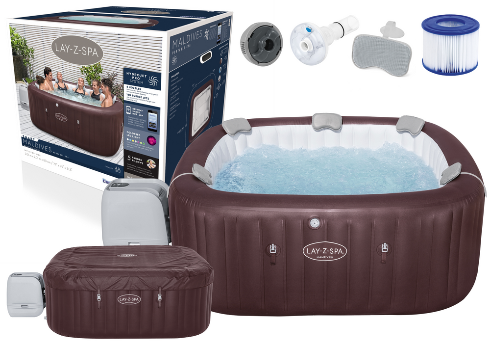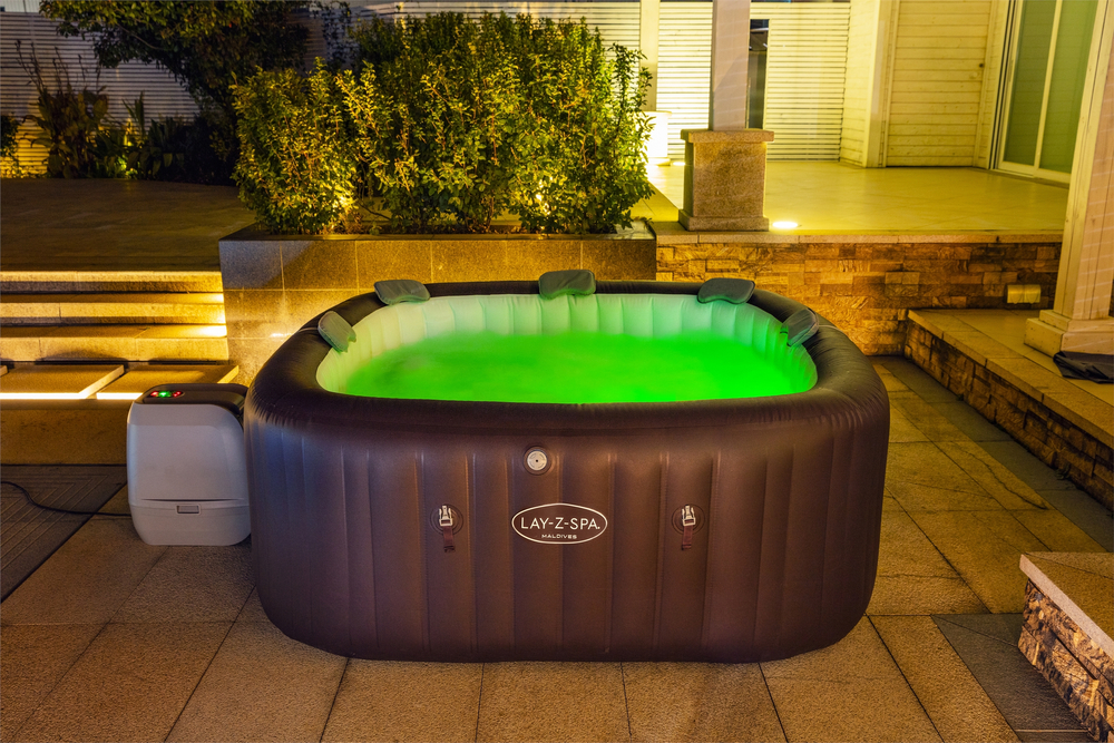 Basen ogrodowy to za mało? Już teraz możesz cieszyć się luksusem w domu zaopatrując się w dmuchane SPA z podgrzewaczem wody. Dmuchane SPA Lay-Z marki Bestway model Maldives, to jedyne w swoim rodzaju SPA, które możesz mieć w swoim przydomowym ogrodzie lub domu Nawet w chłodniejsze dni możesz wskoczyć do ciepłej wody. Ten basen z bąbelkami to orzeźwienie i niesamowity odpoczynek. Zbiornik charakteryzuje się grubymi, nadmuchiwanymi ścianami. Podczas korzystania z SPA będą wygodnym oparciem dla Ciebie i Twoich najbliższych. W zestawie z dmuchanym spa, są również poduszki umożliwiające wygodny odpoczynek. W zestawie znajduje się również dozownik, który utrzymuje czystą, zdrową wodę przez dozowanie odpowiedniej ilości chemii. W zestawie znajdują się również 7-kolorowe diody LED ColorJet, które dodają nastroju i osobowości do Twojego spa.