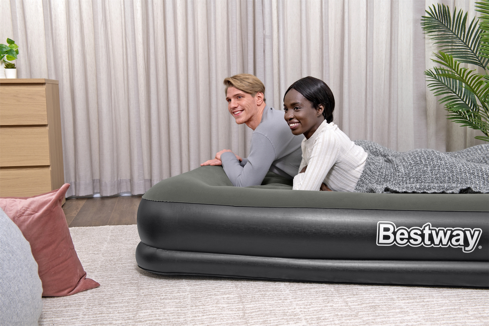 materac turystyczny przeznaczony jest do użytku zarówno wewnętrznego jak i zewnętrznego. Został wykonany z wytrzymałego materiału, dzięki czemu jest odporny na uszkodzenia. W swojej górnej części pokryty jest miękkim flokowanym materiałem. Materac dopasowuje się do ciała i idealnie sprawdzi się pod namiotem lub w domu jako zapasowe łóżko dla gości. .Dzięki wygodnej powierzchni do spania i solidnej konstrukcji oraz wbudowanej poduszce wspaniały sen jest na wyciągnięcie ręki. Wewnętrzna struktura tego łóżka jest wykonana z materiału Tritech™, który zapewnia trwałość i wytrzymałość, a jednocześnie pozwala materacowi zachować ten sam kształt bez względu na to, ile razy jest napompowywany i opróżniany.