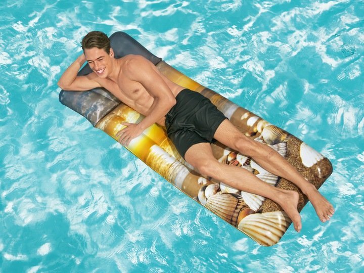 Jednym z najbardziej popularnych artykułów do pływania niezbędnym dla każdego miłośnika wody jest materac. Dzięki nim w spokoju będziesz mógł wylegiwać się na słońcu nie wychodząc z wody. Materac jest wyposażony w wbudowana nadmuchiwaną poduszkę, która zwiększa komfort użytkowania. Charakteryzuje się również ogromną stabilnością na wodzie. Wytworzony jest z odpornego na uszkodzenia materiału PVC, dzięki czemu dowoli będziesz mógł czerpać radość z jego korzystania.