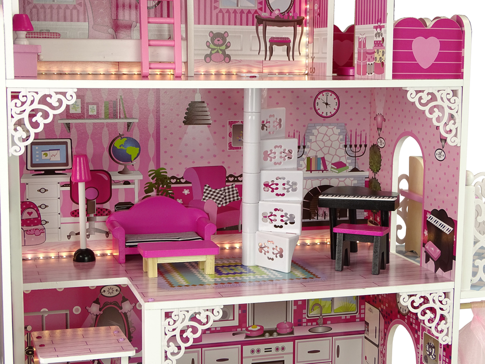 Domek dla Lalek Drewniany Willa Nadia Światło Różowy