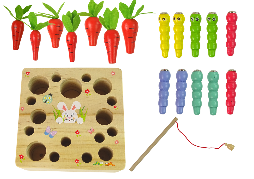 Drewniana Gra Marchewki Dżdżownica Magnes Wędka
