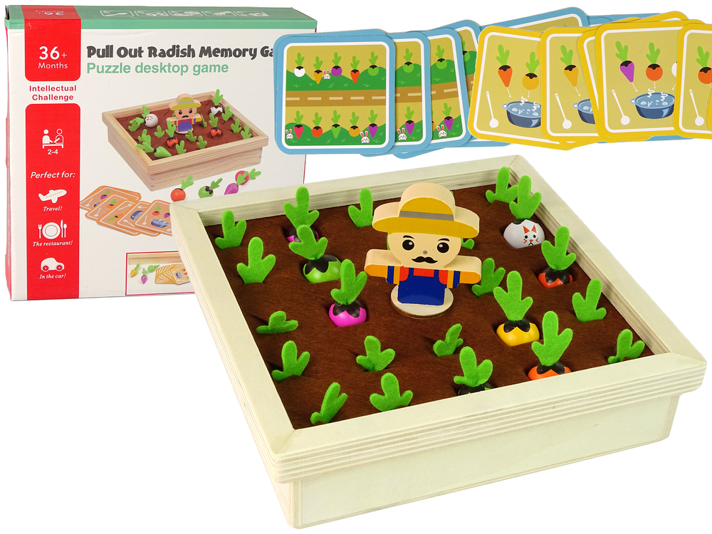 Drewniana Gra Pamięciowa Wyciągnij Rzodkiewkę Karty
