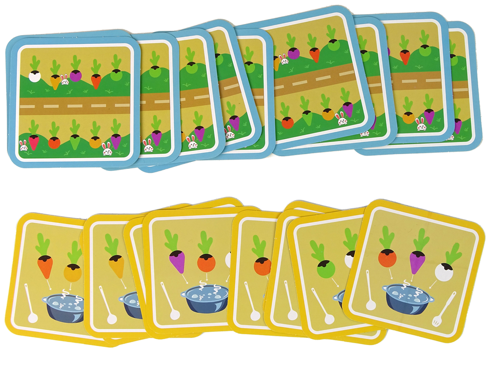 Rozpoczyna najmłodszy gracz. Jeśli uda mu się zebrać dwa identyczne warzywa pod rząd, zostawiasz je i gra toczy się dalej. Jeśli zbierzesz dwa różne, zasadzasz je na polu i swoją próbę rozpoczyna drugi gracz.