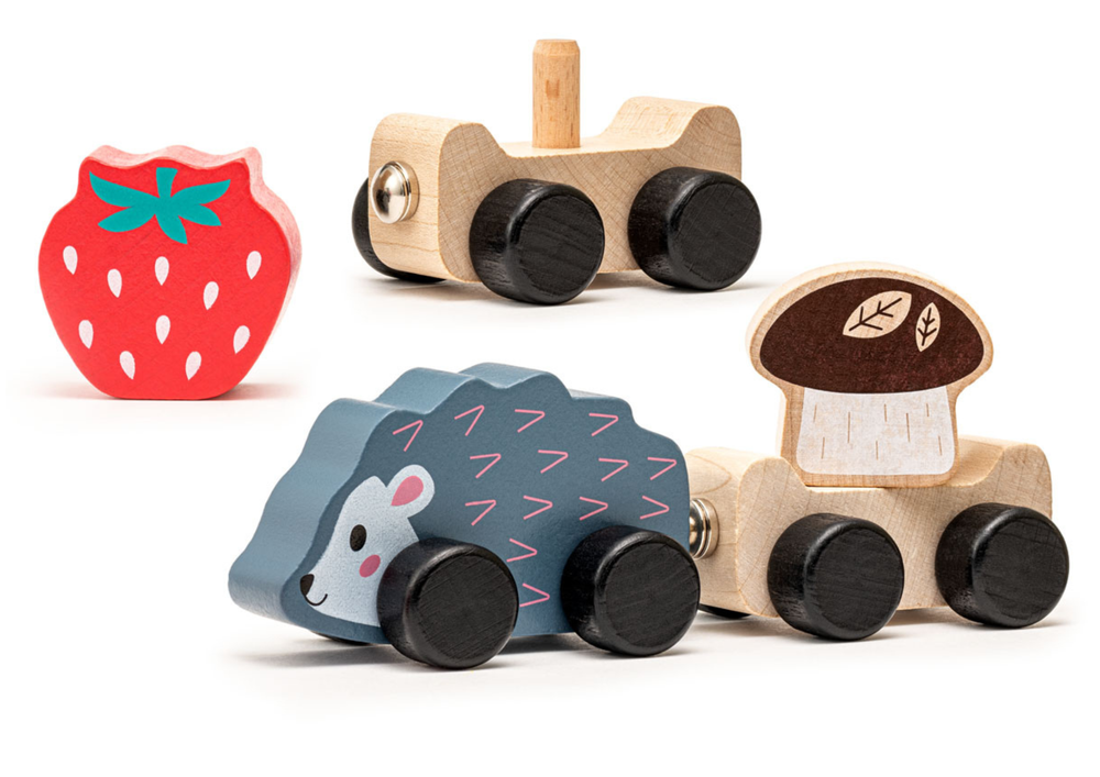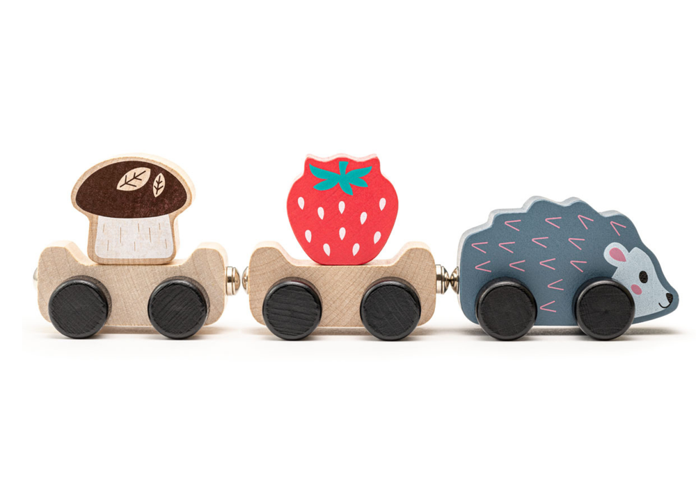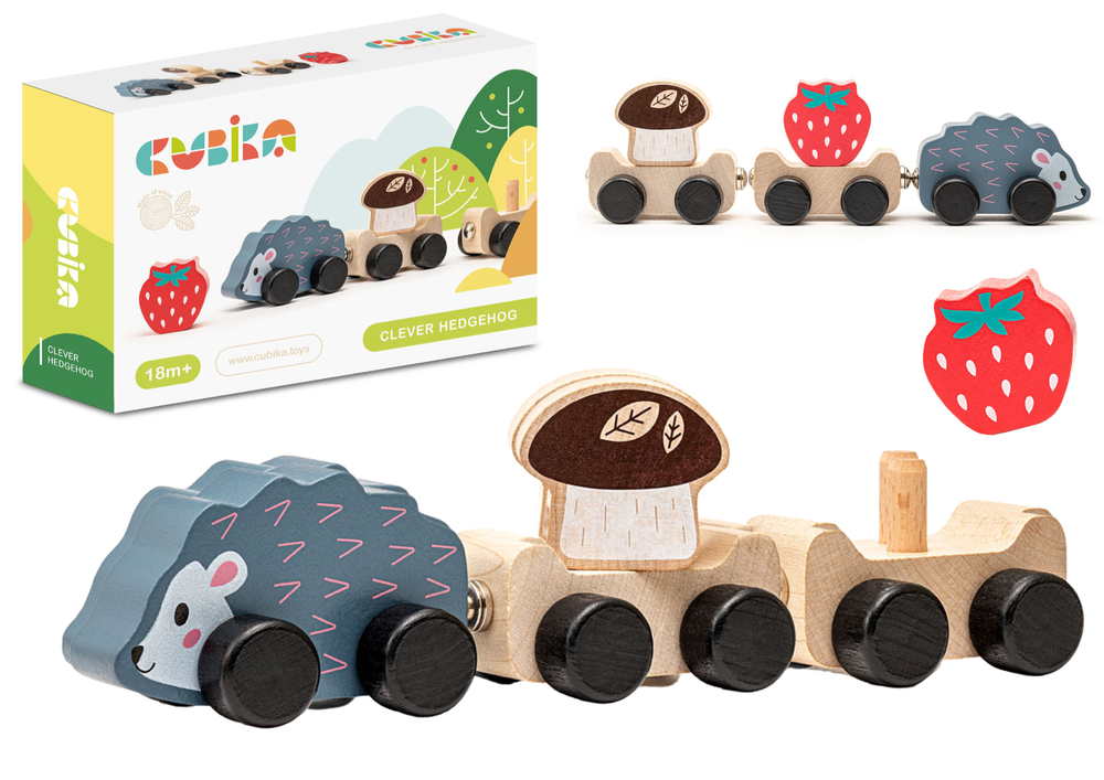 Drewniana Zabawka Mądry Jeżyk Wagoniki Truskawka Grzybek 15467