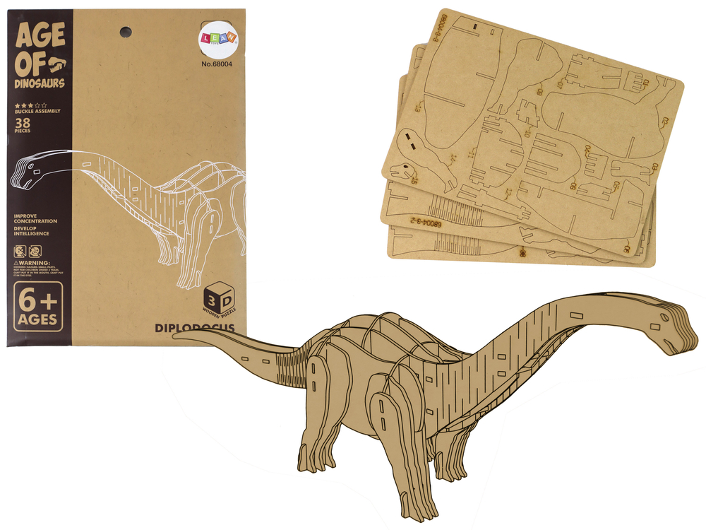 Brontozaur z drewnianych puzzli przestrzennych 3D! To pasjonujące i edukacyjne doświadczenie, które połączą Twoje dziecko z pracą twórczą, rozwijaniem wyobraźni przestrzennej i zdolnościami manualnymi. Nasz drewniany model powstaje poprzez systematyczne wyciskanie elementów z naciętych arkuszy sklejki drewnianej i dopasowanie ich ze sobą zgodnie z załączoną instrukcją obrazkową.