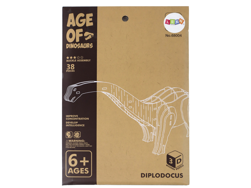 Drewniane Puzzle Przestrzenne 3D Brontozaur Składanka Edukacyjna 38 Elementów