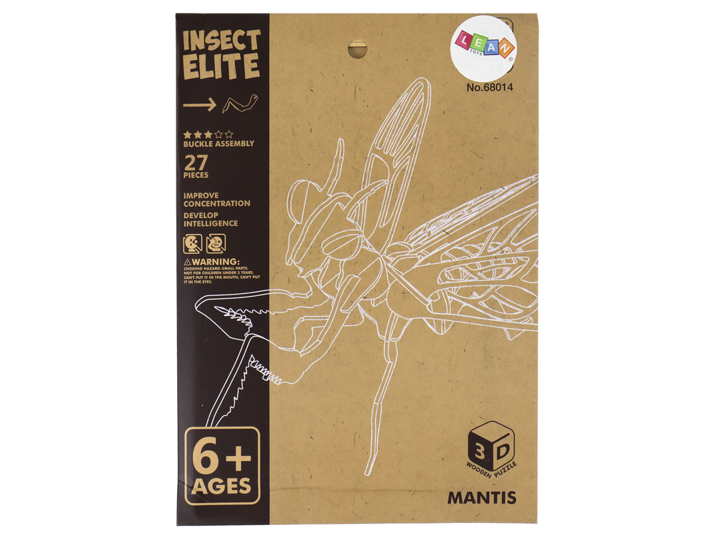 Drewniane Puzzle Przestrzenne 3D Modliszka Składanka Edukacyjna 27 Elementy