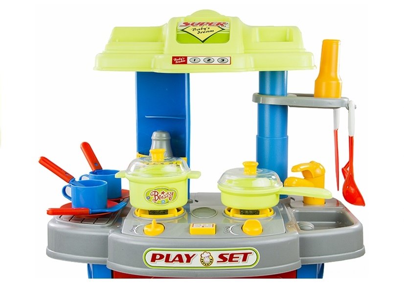 Prowadzenie własnego gospodarstwa domowego jest nie tylko świetną zabawą, ale i bardzo rozwojowym zajęciem, dzięki któremu dziecko może nauczyć się wielu ważnych rzeczy, w bardzo przyjemny sposób. Jeśli szukają Państwo bezpiecznej kuchni do zabawy w dom, restaurację czy bar szybkiej obsługi — przedstawiamy idealny produkt. Kuchnia ta składa się z imponującej ilości dodatkowych elementów, które są konieczne do sprawnego prowadzenia własnego gospodarstwa. Wybierając ten zestaw można mieć pewność, że mały miłośnik zabawy w gotowanie będzie uradowany.