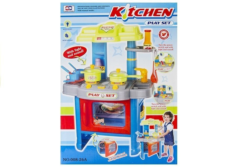 Prezentowana kuchnia wyróżnia się innowacyjnym, nowoczesnym designem, a także świetną kolorystyka — połączenie niebieskiego koloru z czerwonymi i limonkowymi elementami sprawia, że już sam widok zachęca i przyciąga do zabawy. Zabawka składa się z aż 22 elementów, bardzo ważnych w wyposażeniu każdej, klasycznej kuchni. Zabawkowa kuchenka posiada dwa podświetlane palniki z niezależnymi włącznikami. Załączenie ich sprawia, że dziecko usłyszy dźwięk przypominający gotowanie potrawy. Kolejną zaletą zestawu kuchennego dla przyszłego szefa kuchni jest wbudowany w piekarnik wyłącznik, czyli timer. Gdy pociecha go włączy, usłyszy charakterystyczny dla piekarnika dźwięk, a w środku zapali się światełko. Po odmierzonym czasie kuchnia się wyłączy.