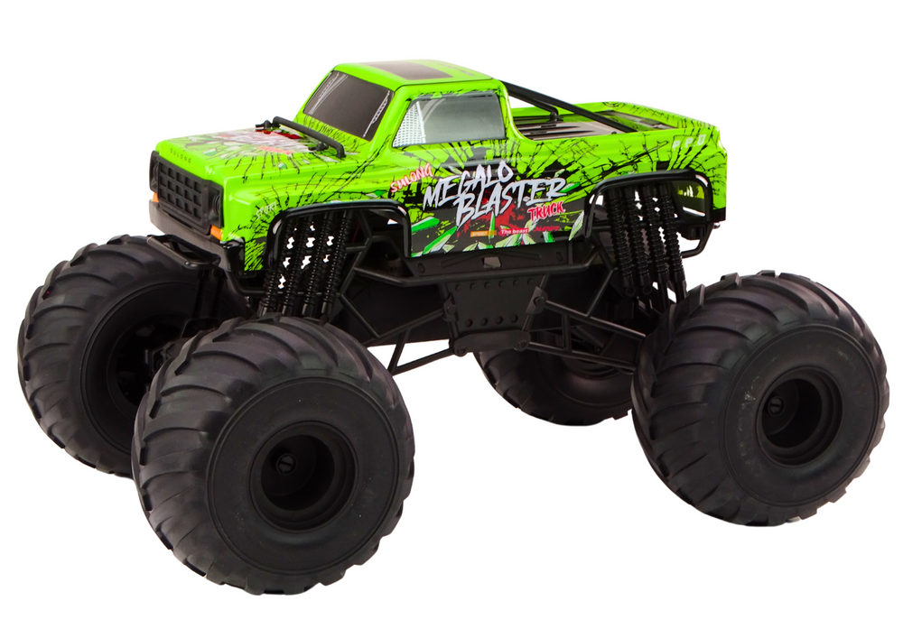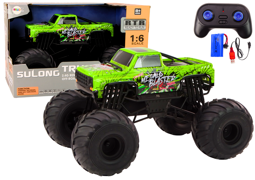 Imponujące ogromne auto terenowe w kolorze zielonym to marzenie każdego miłośnika zdalnie sterowanych pojazdów! Zbudowane w skali 1:6, prezentuje się majestatycznie zarówno dla użytkownika, jak i obserwatorów.