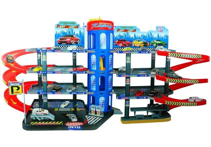 Zestaw dla chłopca uwielbiającego autka składa się przede wszystkim z ogromnej konstrukcji poziomowego parkingu, a także dodatkowych elementów — dużego zestawu naklejek służących do ozdobienia toru, pachołków i znaków bezpieczeństwa, barierek czy szlabanu. W prezentowanym zestawie parkingowym znajduje się podnośnik, dzięki któremu mechanik może sprawdzić, który podzespół samochodu nie działa prawidłowo, a także stacja z dwoma dystrybutorami paliwa, konieczna przy długich i wyczerpujących podróżach.