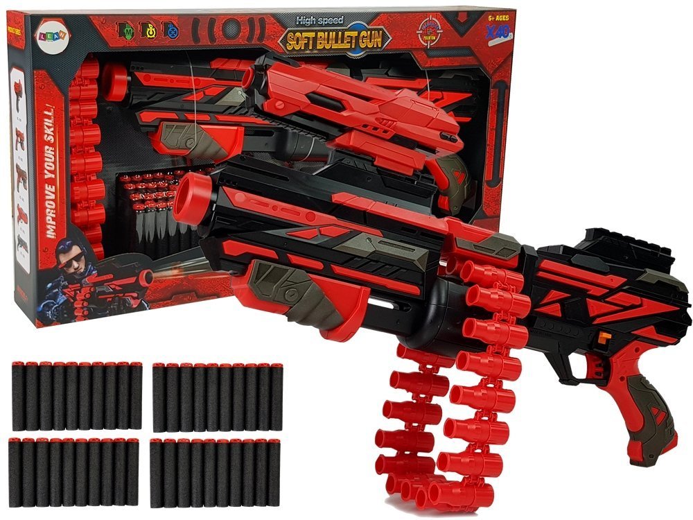 Duży Pistolet Karabin Na Piankowe Naboje 40 Sztuk Czerwono- Czarny Celownik