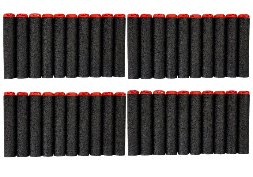 Pistolet posiada długi magazynek w kształcie paska, gdzie bez problemu można pomieścić aż 40 naboi. Zasięg strzału jest bardzo duży, bo aż 45 m! Jego budowa przypomina konstrukcję prawdziwej broni- jednak jest bezpieczna, nie posiada ostrych zakończeń i elementów. Celownik zamontowany na górze pistoletu pozwala na dokładniejsze wymierzenie celu. Aby strzelić wystarczy pociągnąć za rączkę do tyłu, załadować pocisk i strzelić! Ogromny magazynek pozwala na szybki wyrzut naboi i dłuższą zabawę, ponieważ nie trzeba co chwilę ładować.
