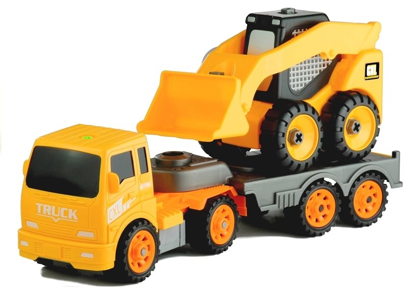 Zestaw dla fana pojazdów budowlanych sprawdzi się w przeróżnych warunkach — zarówno w domu, jak i w ogródku. Jego największym atutem jest design, który do złudzenia przypomina prawdziwe, pełnowymiarowe pojazdy znane dziecku z placów budowy, a także możliwość samodzielnego demontażu i montażu poszczególnych elementów zabawki. Znajdujące się w zestawie narzędzia, czyli śrubokręt wraz z wymiennymi końcówkami, umożliwi dziecku odkręcenie między innymi kół, łyżki, a nawet naczepy lawety. Kolorystyka zabawki nawiązuje do pojazdów budowlanych, rewelacyjnie ze sobą kontrastując. Autka posiadają zaciemnione szyby i liczne detale, które tylko nadają im jeszcze ciekawszego charakteru.
