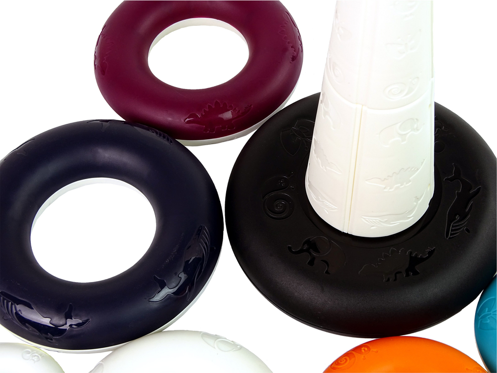 Zestaw składa się z kilku rodzaju pierścieni różnej wielkości. Jedną z możliwości jest układanie pierścieni według wyobraźni dziecka. Umieszczona na szczycie piramidy żółta kaczuszka dodatkowo uatrakcyjnia całą zabawę, grzechocząc. Jej skrzydełka zrobione są z miękkiej gumy, co może posłużyć jako gryzak. Barwna kolorystyka ze zwierzątkami pomoże w rozwoju Twojego dziecka i poznawania otaczającego go świata. Na piramidce znajdują się również podobizny zwierząt odpowiadające odpowiednim okręgom. Maluch przy układaniu wieży może sugerować się obrazkami.