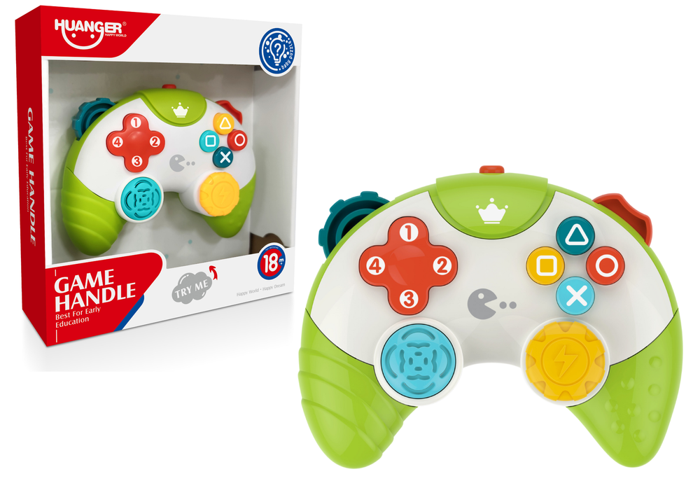 Interaktywne zabawki z efektami świetlnymi i dźwiękowymi to coś, co uwielbiają wszystkie dzieciaki. Ruchliwe i ciekawe świata maluszki lubią podbierać rzeczy, które zarezerwowane są dla dorosłych — klucze, telefony, piloty czy pady. Teraz najmłodsi gracze mogą przejąć kontrolera gier, który uczy kształtów i kolorów. Maluch, chwytając i kręcąc elementy na padzie, rozwijają zręczność i koordynację ręka- oko. Realistyczny wygląd zachęca małego gracza do odgrywania ról i zabawy z wyobraźnią!