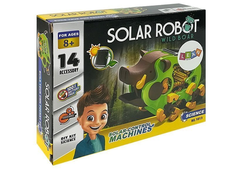 Dzik zasilany energią słoneczną to wspaniały prezent dla dziecka. Stanowił będzie doskonałe wprowadzenie do magicznego świata elektroniki i mechaniki. Solarny zestaw zasilany jest światłem słonecznym, uczy czerpania pożytku z energii słonecznej. To wspaniała zabawa, podczas której dzieci poznają jak energia światła zasila napęd elektryczny. Zestaw pozwala dzieciom na naukę poprzez zabawę, to naturalna forma poznawania świata, która jest najbardziej przyjemna i przyswajalna dla dzieci, a rozbudzona w nich kreatywność zaowocuje w przyszłości. Zestaw gwarantuje wspaniałą zabawę, podczas której dziecko pozna alternatywną energię. Własnoręczny montaż będzie stanowił dodatkową atrakcję. Zestaw zawiera 47 elementów do złożenia dzika. Jednym z najbardziej skutecznych sposobów na rozwijanie zdolności interpersonalnych u dzieci jest tworzenie samodzielnie własnych prac. Kreatywne zabawki rozbudowują inteligencję, zdolność skutecznego wysławiania się i przekazywania innym osobom swoich zamiarów i chęci.