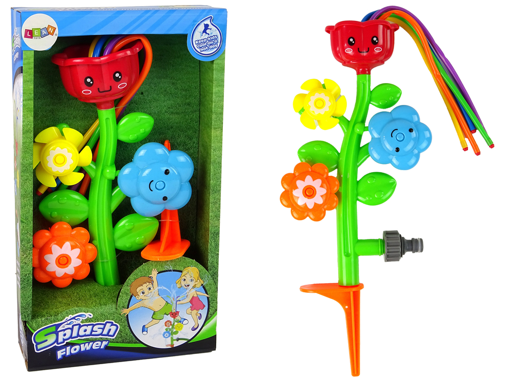 Jedyne co musisz zrobić to podłączyć wąż ogrodowy do kwiatka za pomocą specjalnej złączki, znaleźć odpowiedni miejsce i puścić wodę. Zabawa rozpoczęta! Na końcu główki kwiatka znajduje się kilka kolorowych wężyków, które pod wpływem ciśnienia wody będą pryskać w każdym kierunku. Duży zasięg, może też zmoczyć Ciebie.
