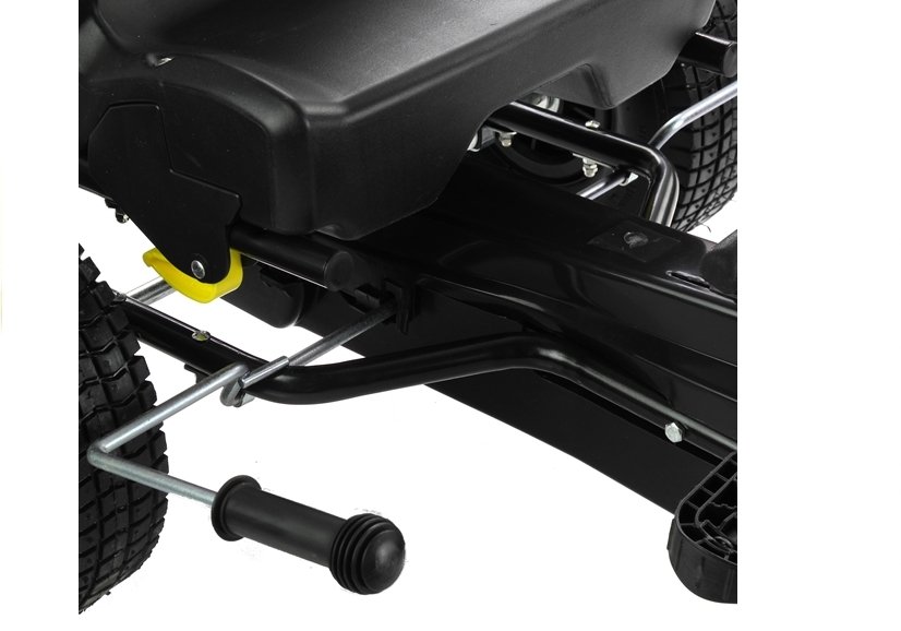 Oryginalny, biały gokart posiada ogrom zalet. Pojazd został osadzony na czterech szerokich kołach z bieżnikiem, co eliminuje możliwość wywrócenia się niemal do zera. W budowie dziecięcego gokarta nie zapomniano o najważniejszym: umieszczeniu intuicyjnego w obsłudze hamulca ręcznego na oba koła, zastosowaniu przekładni z wolnym biegiem oraz zastosowaniu pompowanych opon. Właściwości te sprawiają, że pojazd jest nie tylko bezpieczny, ale i prosty w obsłudze. By zahamować, wystarczy energicznie zaciągnąć rączkę umieszczoną tuż nad tylnym, prawym kołem. Tylko tyle trzeba zapamiętać, by móc wyruszyć w wesołą podróż.