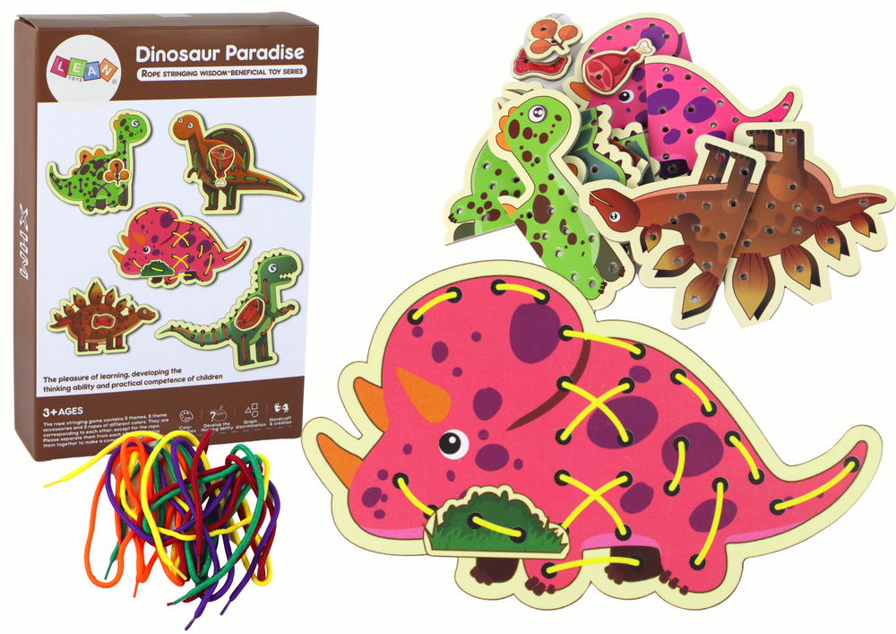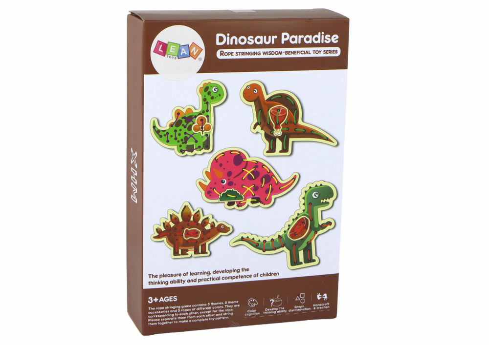 Gra zachęca dzieci do rozważnego dopasowywania dinozaurów do ich ulubionego pożywienia, co rozwija logiczne myślenie i zdolności rozwiązywania problemów. Równocześnie, umiejętność sznurowania wymaga precyzji i zręczności, co doskonale rozwija motorykę małą.