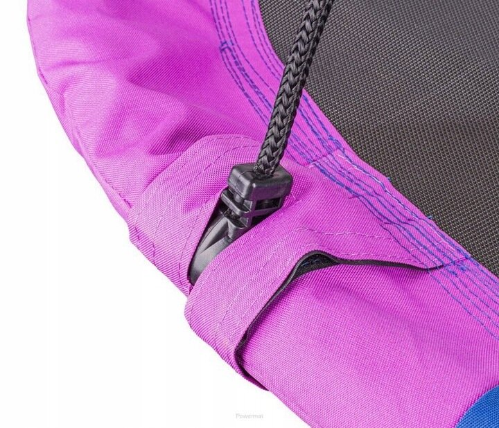 Wysokość huśtawki można regulować w zakresie 91 – 140cm. System regulacji został wykonany z metalu, a mocowanie liny Nylonowej zostało solidnie zgrzane i usztywnione plastikowym zabezpieczeniem, dzięki czemu huśtawka ma udźwig aż 150kg.