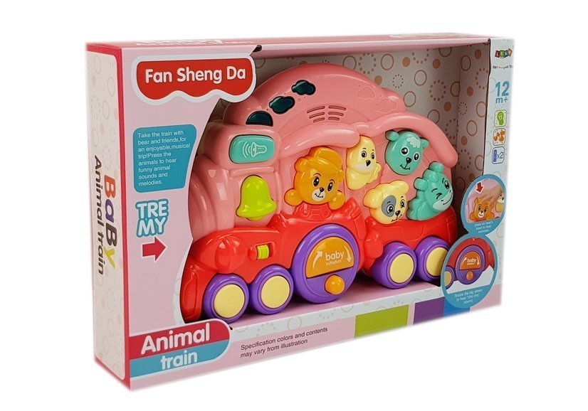 Interaktywna Lokomotywa ze Zwierzętami Odgłosy Zwierząt Efekty Świetlne Różowa