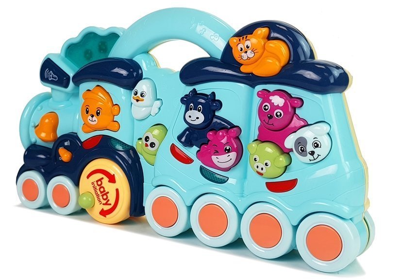 Interaktywna Zabawka dla dzieci Lokomotywa Odgłosy Zwierząt Dźwięk Niebieska