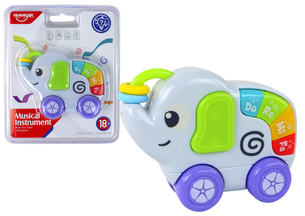 Dodatkowo, nasz słonik posiada wbudowane funkcje muzyczne i dźwiękowe, co dostarcza dodatkowej frajdy i wzbogaca doświadczenia sensoryczne dziecka.