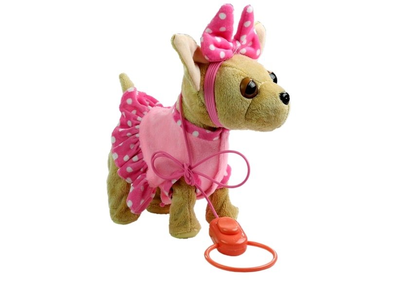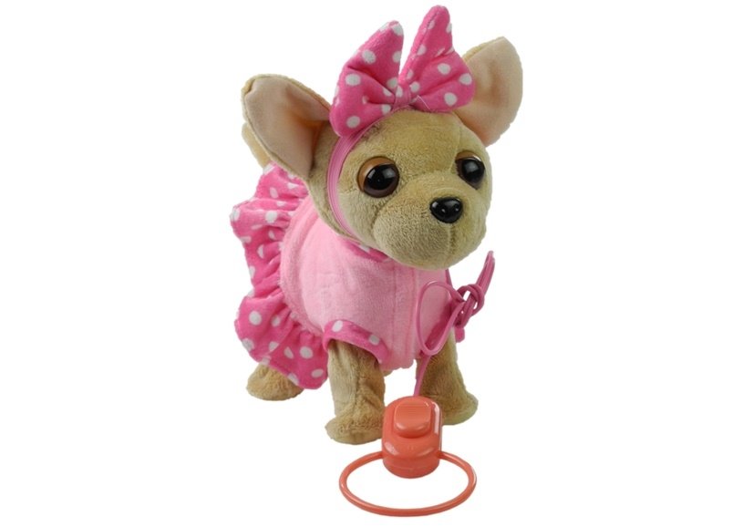 W skład zestawu wchodzi pluszowy psiak Chihuahua, smycz, szczotka i miseczka. Piesek jest ubrany w różowe ubranko z kokardką, co sprawia, że wygląda jeszcze bardziej uroczo! Dzięki eleganckiemu opakowaniu zabawka nadaje się perfekcyjnie na prezent!