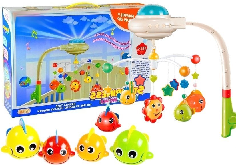 Karuzela Rybki Do Łóżeczka z Projektorem Gwiazdy