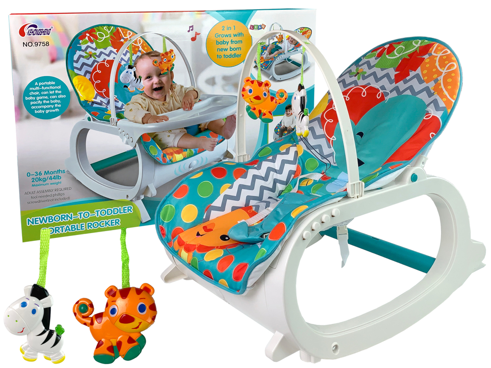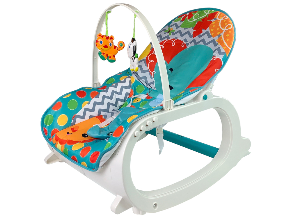 Ten fotelik rośnie razem z dzieckiem ! Gdy dziecko urośnie, wystarczy usunąć pasy zabezpieczające. Zawieszki z pewnością przyciągną uwagę dziecka, zachęcając do treningu rączek. Bujak ukoi zmysły dziecka, pomoże w zasypianiu, dzięki wibracją, a przyjazna muzyczka uspokoi i skłoni do zabawy malucha.