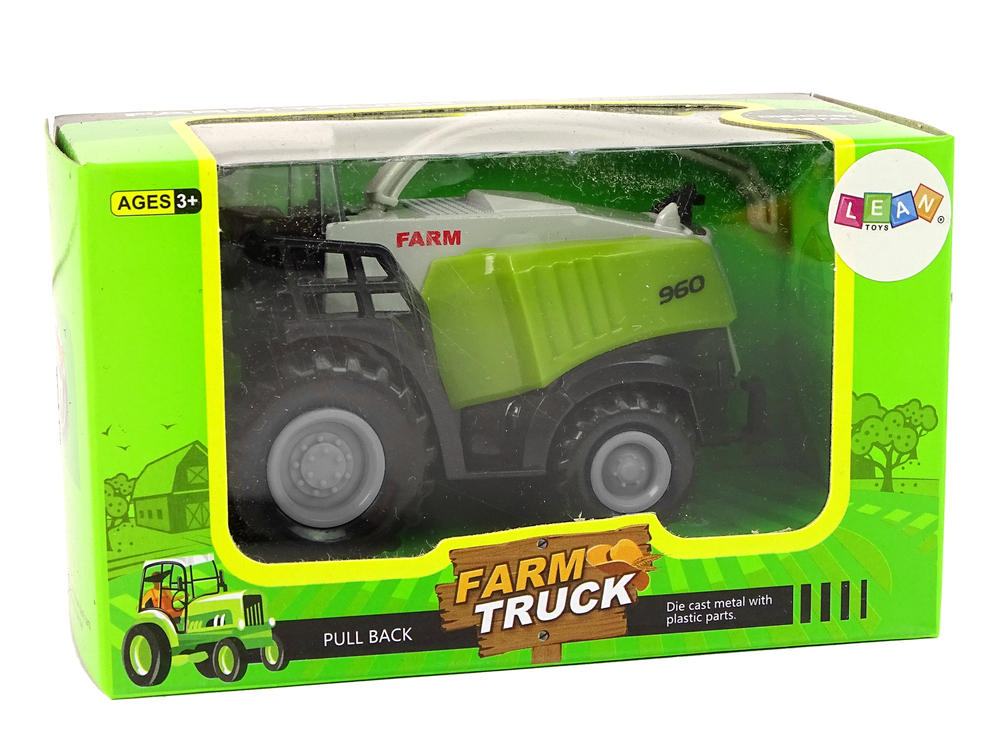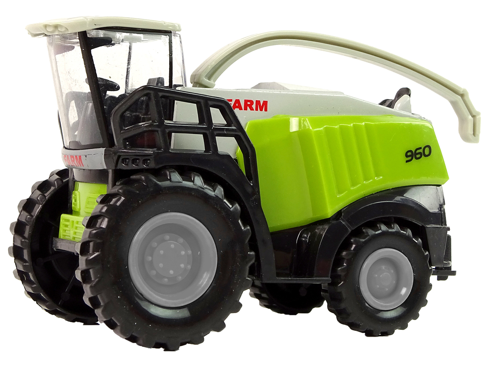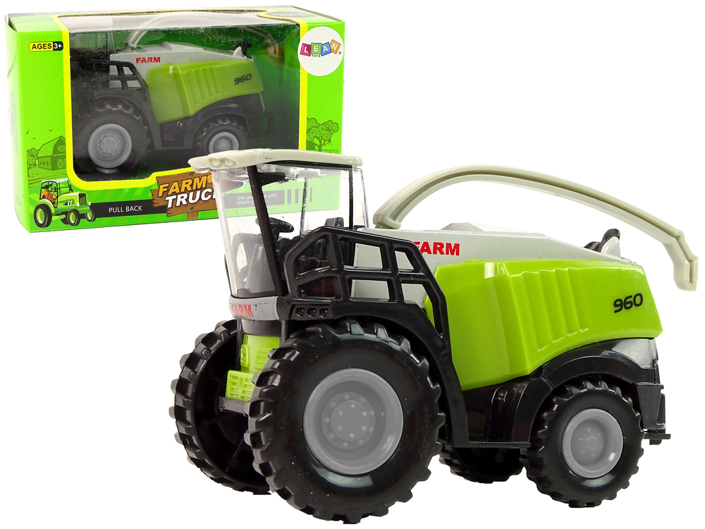 Wykonany jest z najwyższej jakości plastiku, co daję gwarancję trwałości i bezpieczeństwa podczas użytkowania. Na przedniej części znajduje się kabina rolnika, z tyłu natomiast wielki zbiornik ze zsypem. Pojazd ma ruchome elementy, które uatrakcyjnią zabawę.