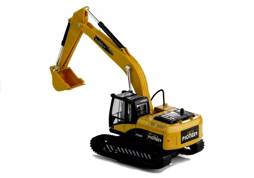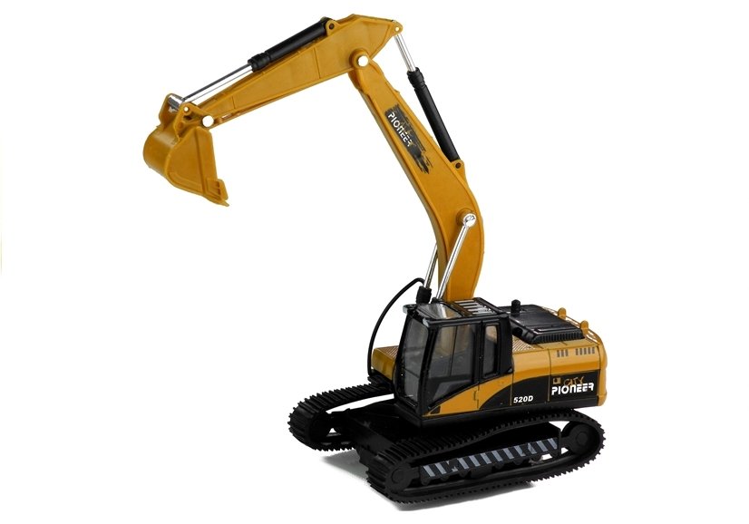 Duża część chłopców przepada za samochodami i różnego rodzaju pojazdami — zwłaszcza tymi budowlanymi. Ich masywne konstrukcje zawierają w sobie wiele niesamowicie ciekawych elementów. Prezentowana przez nas koparka poza swym rewelacyjnym wzornictwem, nawiązującym do pełnowymiarowego sprzętu, odznacza się ruchomym ramieniem zakończonym łyżką, napędem frykcyjnym oraz efektami świetlnymi i dźwiękowymi. By je aktywować, należy wyciągnąć zabezpieczenie, znajdujące się w dolnej części zabawki, a następnie wcisnąć czarny guziczek znajdujący się na ruchomym pulpicie koparki.