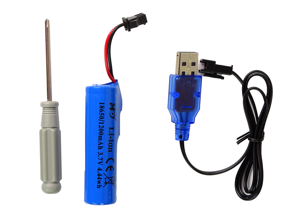 Jednym z atutów tej zabawki jest zasilanie na akumulator, które pozwala na wielokrotne użytkowanie po jednym naładowaniu, co jest ekonomiczne i przyjazne dla środowiska. W zestawie znajduje się kabel do akumulatora oraz śrubokręt, dzięki czemu ładowanie jest proste i wygodne.