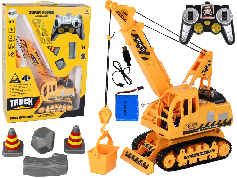Dźwig jest zdalnie sterowany za pomocą pilota, który jest dostarczany w zestawie. Pilot umożliwia płynne poruszanie dźwigiem do przodu, do tyłu, w prawo i w l
